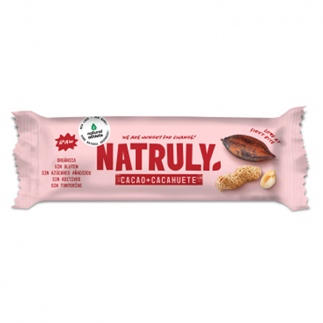Palabras clave | alimentación, barrita, frutos secos, sin gluten, sin azúcares añadidos, sin aditivos, vegano, cacao, cacahuete, snack |